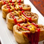 - Tightly roll everything into a long meat log of freedom and place on a greased baking sheet.