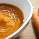 Peel and finely chop one large carrot. Place it in a saucepan with 2 cups of water, 1 teaspoon of salt, ½ teaspoon of pepper, and ¼ cup of olive oil. Simmer on medium-low heat for about 15 minutes or until the carrots are soft.