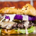 - build the burger top to bottom- lettuce, patty, jalapenos, red onion